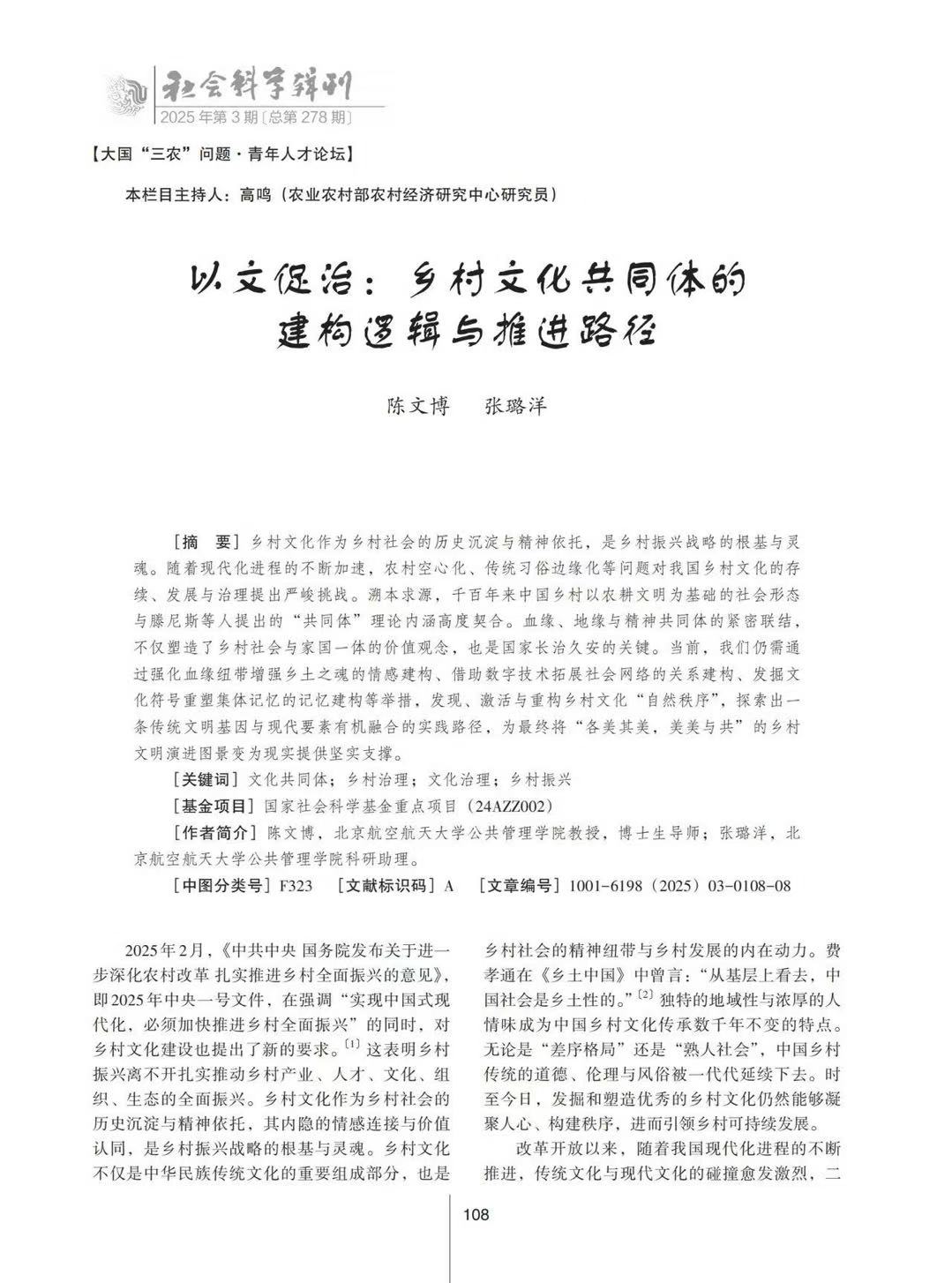 我院教授陈文博、科研助理张璐洋在...近日,北京亚洲成人在线一二三四五六区人文社会科学学院(公共管理学院)陈文博教授、科研助理张璐洋在《社会...