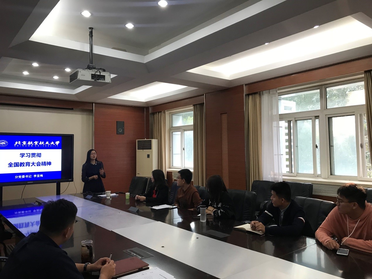李亚梅书记讲解了全国教育大会精神的主要内容,强调辅导员要认真学习全国教育大会精神,并落实到具体工作中去。