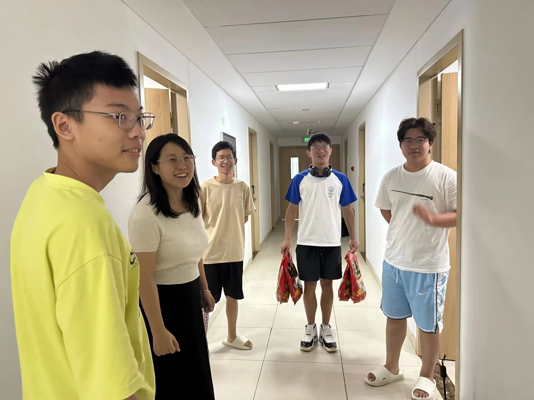 8月21日,人文公管学院2023级本科生从沙河校区搬迁至学院路校区,学院院长蔡劲松、党委书记王琪全、党委副书记方志、团委书记黄焘到搬迁车辆下车点迎接,与学生们亲切交流,向他们表示热烈欢迎并送上慰问礼包。宿舍搬迁后,学院开展了宿舍走访慰问。