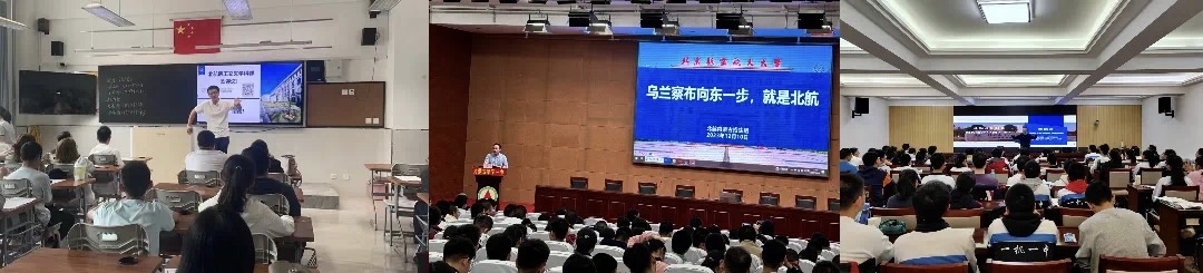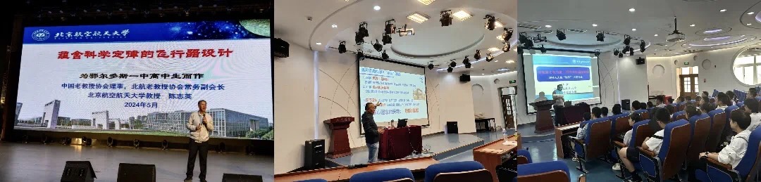 招生组邀请到北航老中青教师、校友、学生,学校专家老师有中国老教授协会理事、北航关工委常务副秘书长、老教授报告团副团长陈志英教授,北航老教授报告团常务副团长郑彦良教授,自动化科学与电气工程学院长江学者任章教授,总务部正处级干部王有洪,学生工作部副部长梁帮龙,材料科学与工程学院党委副书记图们,航空科学与工程学院党委副书记梁伟涛,人文社会科学学院(公共管理学院)副院长陈文博教授、院长助理聂晨副教授、经济系主任何平林教授、高文娟副教授、李根强副教授,人工智能学院副院长刘偲教授,能源与动力工程学院院长助理范雨副教授,计算机学院教师牛虹婷,经济管理学院周建涛副教授、胡鹤老师,数学科学学院团委书记程乾,生物与医学工程学院杨肖副教授,航空发动机研究院副研究员徐天彤、韩啸,网络空间安全学院院长助理张宗洋副教授,集成电路科学与工程学院实验教学中心主任张慧副教授、李栋老师,后勤服务中心赵翌胜老师等,北航校友总会副秘书长黄瑞勇等。他们以深厚的学术造诣和丰富的教育经验,为学生们描绘了一幅幅北航的精彩画卷,点燃了学生们心中的梦想之火。