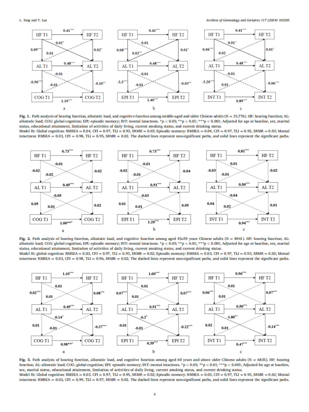 近日,北京亚洲成人在线一二三四五六区人文社会科学学院(公共管理学院)杨磊副教授与北京大学公共卫生学院罗雅楠副研究员合作的文章《The interrelationships of hearing function,allostatic load,and cognitive function: Evidence among middle-aged and older Chinese adults》在SSCI期刊《Archives of Gerontology and Geriatrics》上发表,以下为文章全文。