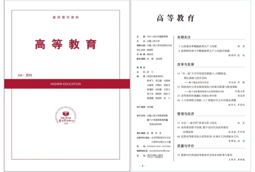 近日,北京亚洲成人在线一二三四五六区人文社会科学学院(公共管理学院)马永红教授、硕士毕业生刘捷撰写的《“双一流”大学可持续发展能力:问题缘起、理论基础与层次结构——基于概念结构分析法》(原刊发于《教育发展研究》2024年第5期),被《人大复印报刊资料·高等教育》2024年第8期全文转载。以下为文章全文。