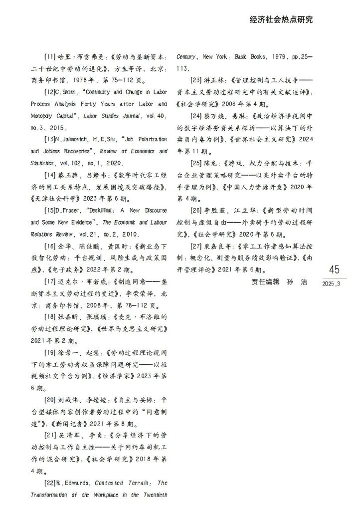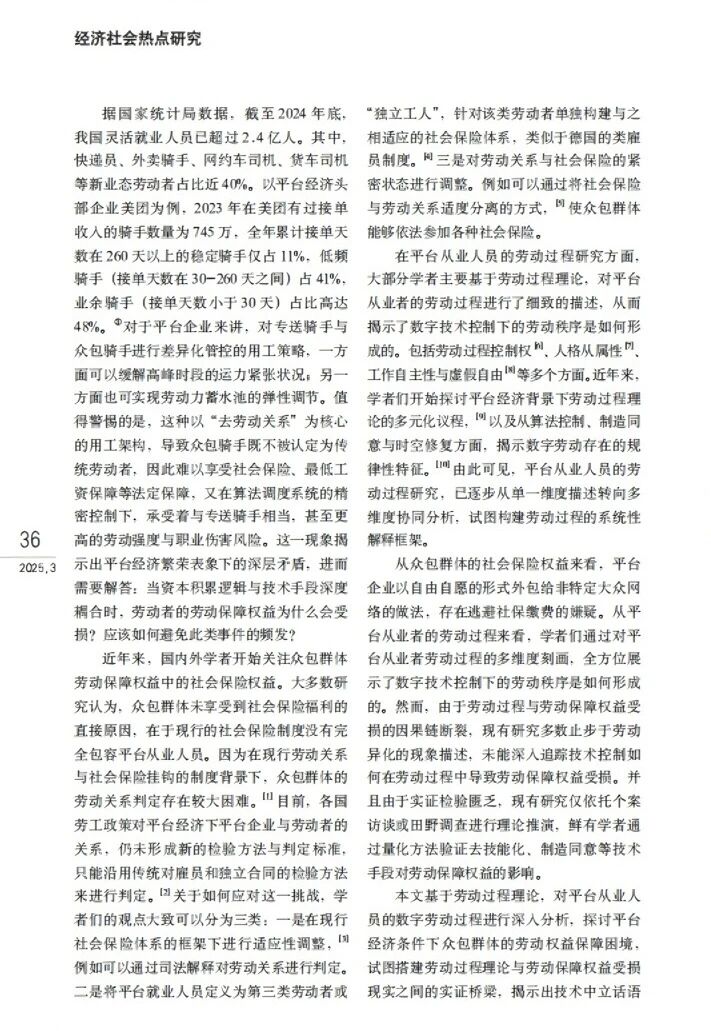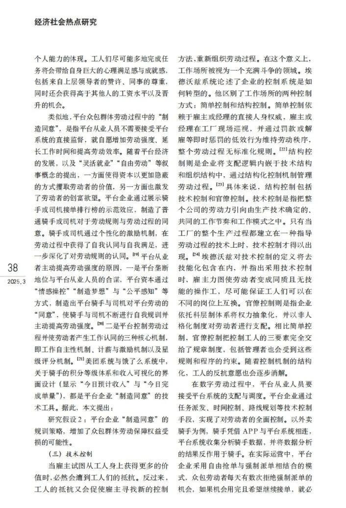 近日,北京亚洲成人在线一二三四五六区人文社会科学学院(公共管理学院)贾洪波教授、博士研究生蔡瑶瑶发表《去技能化、制造同意和技术控制:众包群体劳动保障权益受损探析》一文,被《人大复印报刊资料·劳动经济与劳动关系》2025年第9期全文转载。