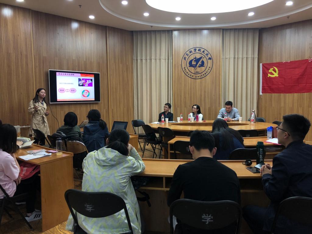 4月23日,一场别开生面的党课交流在沙河校区雄鹰领飞中心大会议室拉开帷幕,本场党课邀请到人文学院党委书记李亚梅老师,党委副书记张驰老师和北航知行唯实小组两位博士生。知行书院党支部8名辅导员、6名学生党员和3名入党积极分子参与了本次党课学习。本次活动是人文学院“文话沙龙”系列活动之“问道党建”专题活动。