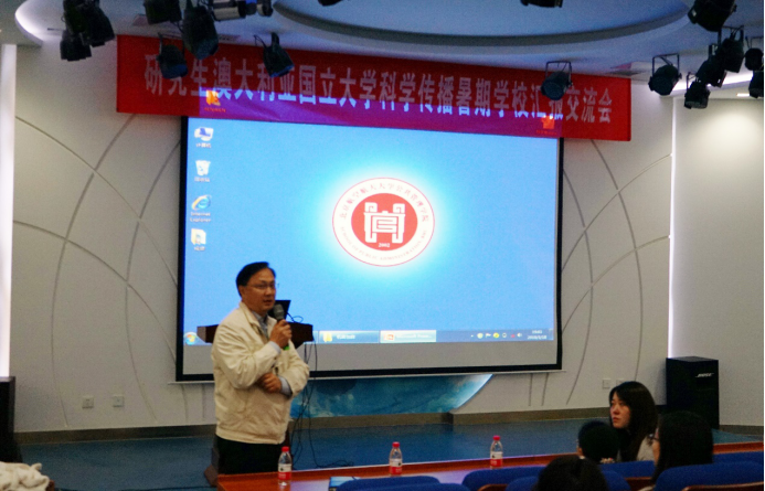 2019年3月18日周一晚7点,人文社会科学学院高等教育研究院师生“澳大利亚国立大学暑期学校”汇报交流会在人文社会科学学院准时开始。出席本次交流会的领导与老师有高等教育研究院院长雷庆教授,高等教育研究院田华老师、郭力老师、张惠老师。汇报会以主持人程飞亚同学热情洋溢地开场白拉开了序幕,首先,他向到场的同学们介绍了此次高等教育研究院师生赴“澳大利亚国立大学科学传播暑期学校”学习的基本情况。