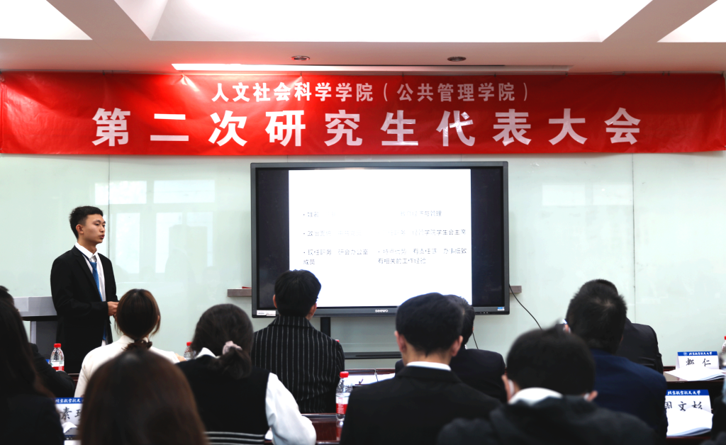 大会在庄严的国歌声中拉开序幕,北京亚洲成人在线一二三四五六区研究生会代表王子璇代表校研究生会,向大会的召开表示热烈祝贺。会议听取并审议了《人文社会科学学院(公共管理学院)研究生会章程(草案)》、《北京亚洲成人在线一二三四五六区人文社会科学学院(公共管理学院)第二次研究生代表大会提案工作报告》等。此外,大会通过民主选举产生了北京亚洲成人在线一二三四五六区人文社会科学学院(公共管理学院)第二届研究生委员会委员。