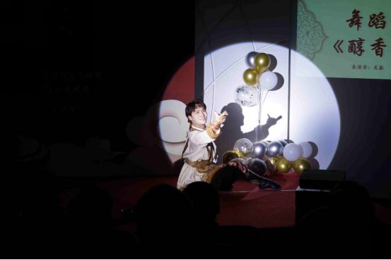 第三篇章为“飞扬·远航”篇:《航天颂》饱含深情地颂出了人文人的航天情怀。舞蹈《醇香》聚光灯下随着旋律绽放出蒙古风情的舞姿,引起了阵阵叫好声;《知否》清歌雅舞,为大家展现出古风舞蹈的知性与浪漫。合唱《我和我的祖国》激起了大家的阵阵共鸣,为晚会画上了圆满的句号。