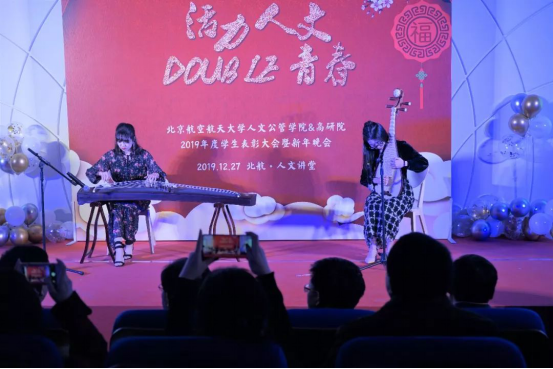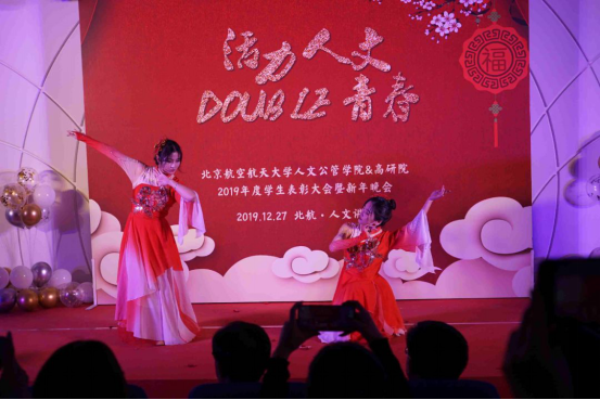 12月27日晚,由人文公管学院&高研院联合举办的“活力人文,double青春”2019年度学生表彰大会暨新年晚会在人文学院大楼一层人文讲堂隆重举行。人文公管学院和高研院院长蔡劲松、人文学院党委书记李亚梅、高研院书记于金龙、高研院副院长杜治洲、人文学院党委副书记张驰以及两院150余名师生参加了本次晚会。