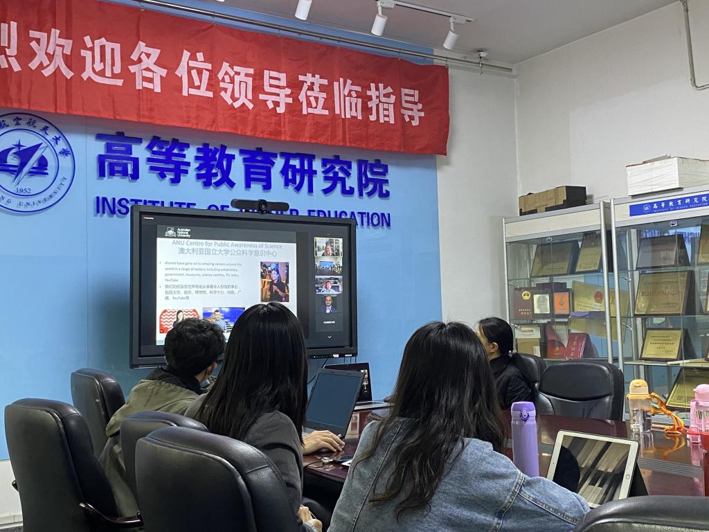 2020年10月15日星期四下午2点,北航-澳国立联合培养科普双硕士项目线上宣讲会借助ZOOM平台远程会议举行。本次参会者为2020级科普专业硕士,宣讲会第二现场在北航高等教育研究院216会议室,云端、现场交流顺畅,互动踊跃。本次宣讲会三位主讲嘉宾是来自澳大利亚国立大学(以下简称澳国立)公众科学意识中心(CPAS)主任Joan Leach教授、高级讲师Will Grant博士、国际事务发展部的Arthur Xu先生。北航高等教育研究院田华老师出席本次宣讲会活动。