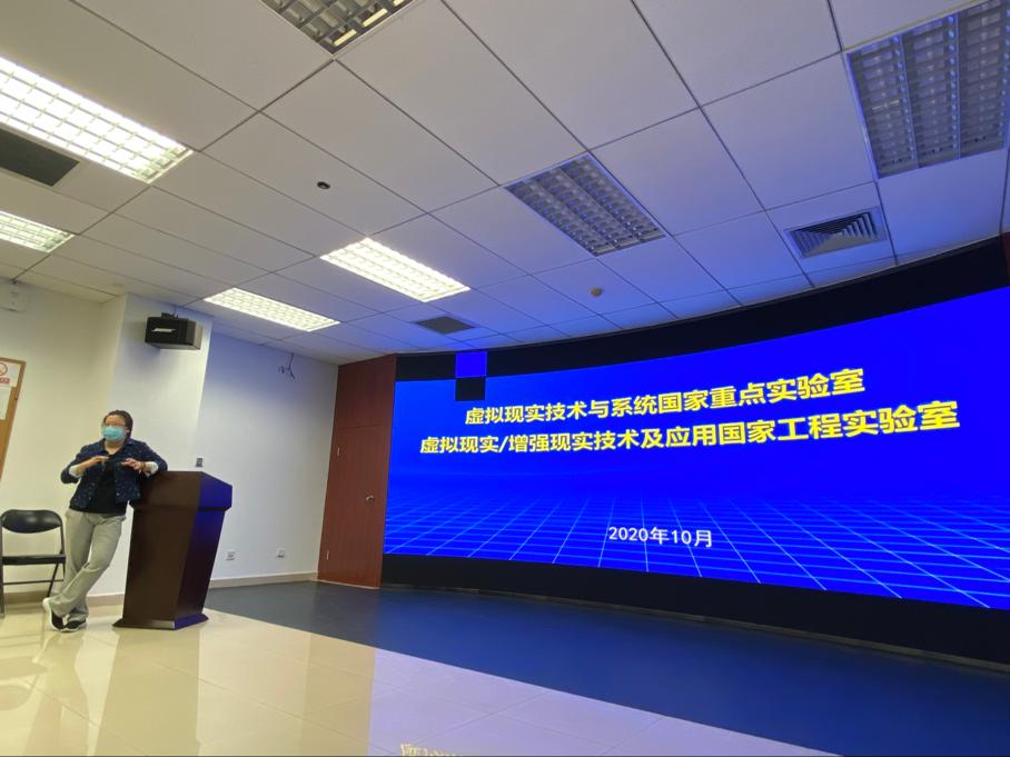 2020年10月15日早上八点半,在高等教育研究院田华老师的带领下,科学与技术教育专业硕士研究生参观了我校虚拟现实国家重点实验室。该实验室是我国两个的国家级虚拟现实重点实验室之一。