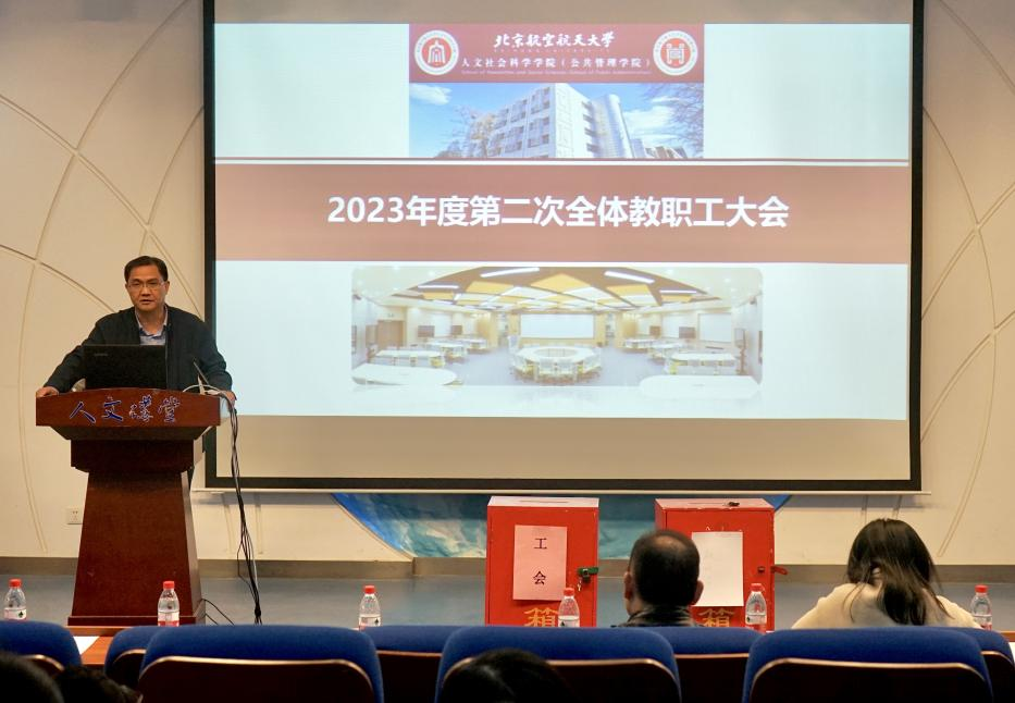 11月8日下午,我院2023年第二次全体教职工大会在人文讲堂召开,部署学院近期重点工作。学院领导班子成员及全体教职工参加会议,会议由学院党委书记王琪全主持。