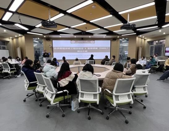 之后,同学们分批参观了学院的公共管理系统工程实验室&智慧教室。吴培熠老师介绍了实验室的基本情况,同学们体验了智慧课堂教学。