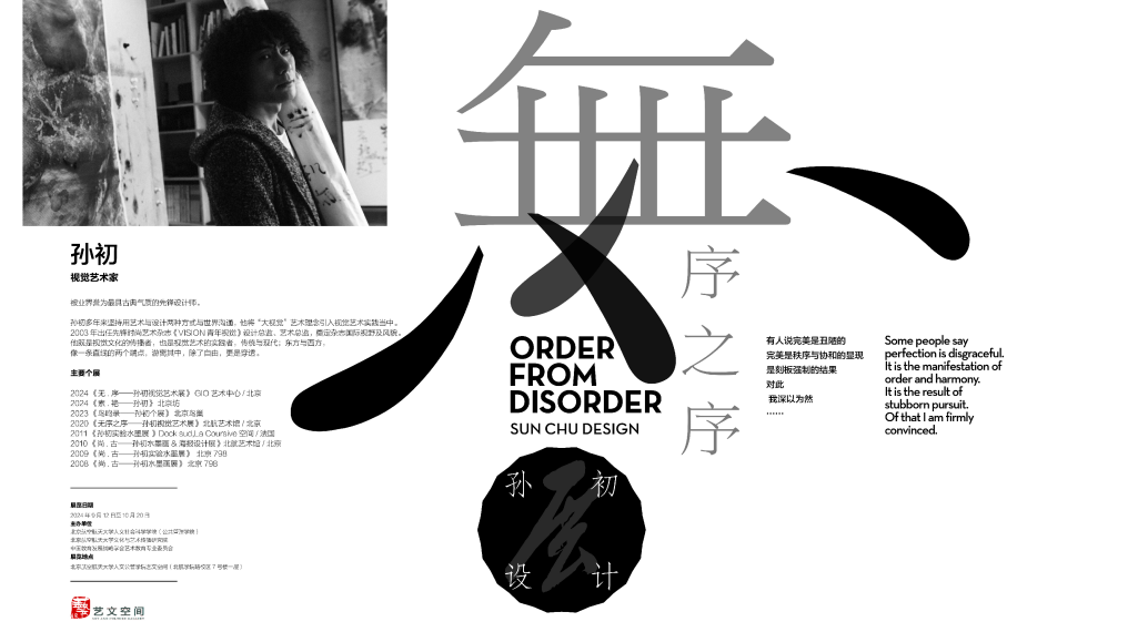 2024年9月12日,由北京亚洲成人在线一二三四五六区人文社会科学学院(公共管理学院)、文化与艺术传播研究院和中国教育发展战略学会艺术教育专业委员会共同主办的“无序之序:孙初视觉艺术设计展”,在新落成的北航人文公管学院艺文空间正式开展。