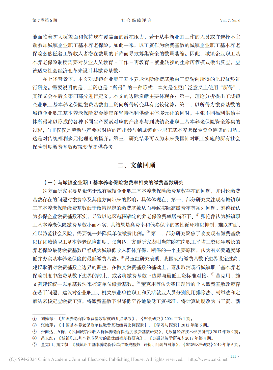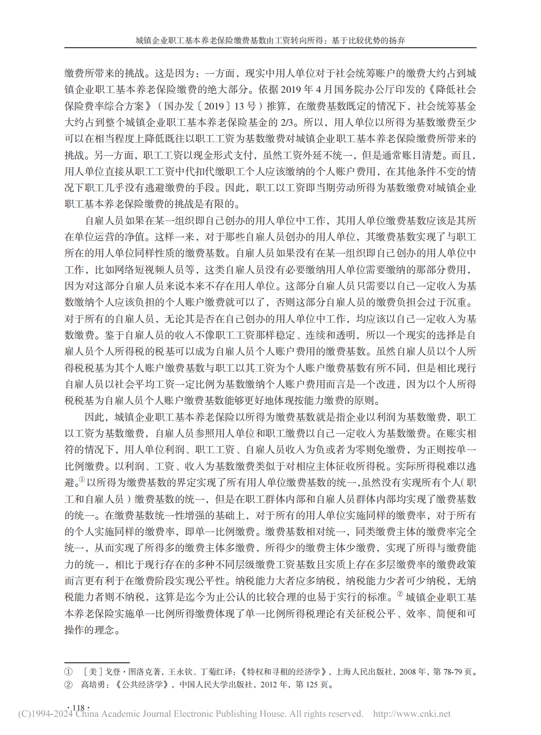 【关键词】城镇企业职工基本养老保险;缴费基数;工资;所得;比较优势;