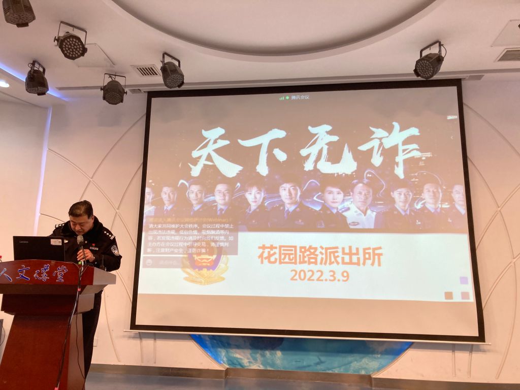 2022年3月9日,为进一步提高师生个人安全意识与防诈能力,筑牢校园安全防线,切实减少校园网络电信诈骗案件的发生,学院邀请到花园路派出所北航社区民警万俊义为全院学生开展“天下无诈”安全教育主题讲座。学校保卫处雷婷、张帆老师,以及学院刘扬教授、专职辅导员张同玉老师参加本次讲座。活动通过线上和线下相结合的方式开展。