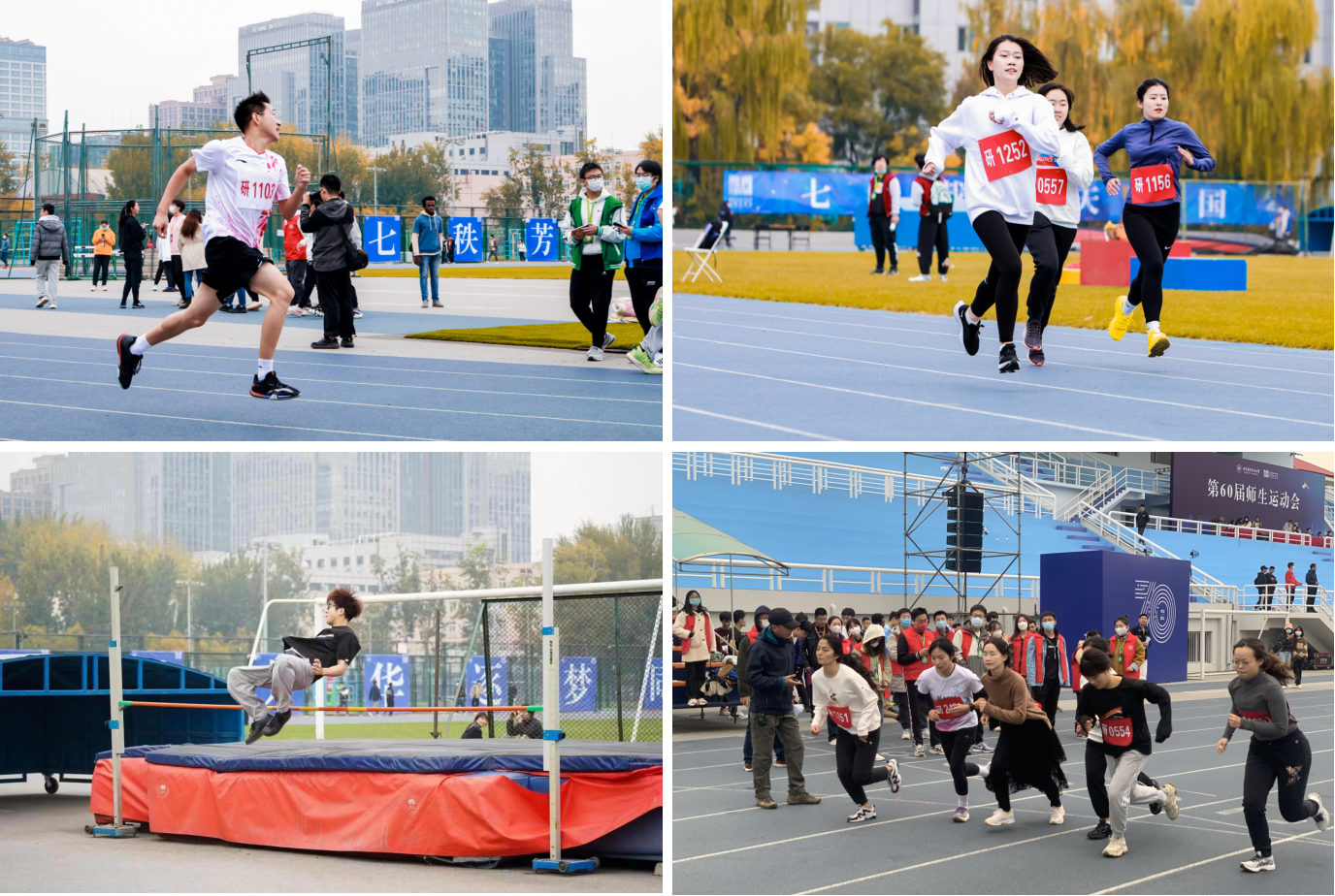 在田径项目中,研究生高叶在跳远比赛和女子800米比赛中分别获得了第一名和第二名的好成绩;吴墨多在铅球比赛中获得冠军;穆冬雪在女子1500米长跑比赛中获得第三名;王泽秋和王天爽分别在女子200米比赛中获得第二、第三名;缪心皓在跳高比赛中荣获第三名,李甘洛在男子100米比赛中获得第八名。本科生陈闻悦、马仲洁、王思怡、秦知涯获得女子组4*100米接力赛冠军;秦知涯获得女子100米第二名的好成绩;黎晴菲获得女子跳高第四名。